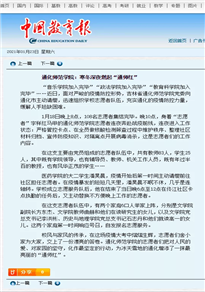 1月23日,中国教育报头版报道我校师生志愿者团队战疫新闻《用实际行动守护家乡和人民》。