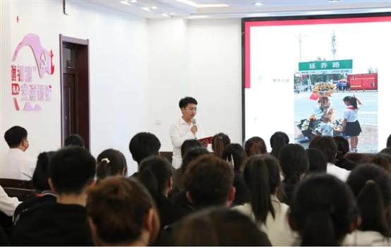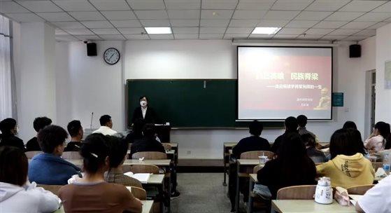 历史与地理学院副教授王虹波为学生讲授《抗日英雄 民族脊梁——走进杨靖宇将军光辉的一生》。王虹波老师从“学生时代 立志报国”“投身革命 农工运动”“抗日救国 决战千里”“英勇殉国 血沃长白”“国葬忠骨 精神永存”五个方面图文并茂地展示了杨靖宇将军的成长历程与波澜壮阔的一生,诠释出了杨靖宇将军一生的丰功伟绩。杨靖宇将军超凡的人格魅力和赤诚的爱国情怀使同学们深受教育和鼓舞,激发了学生传承和弘扬靖宇精神的决心。互动中,同学们满怀敬意和激情地表达自己的学习体会,立志要学好红色历史,传承红色基因,更好地服务于祖国建设和民族复兴的历史伟业!