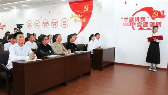 “薪火”大学生宣讲团成员张丁月、刘旭松两名同学为数学学院学生深情讲述杨靖宇将军和《觉醒年代》中二陈兄弟的红色故事,引发了现场同学们的强烈反响。“我志愿加入中国共产主义青年团……”数学学院的青年团员们高举右拳、面向团旗庄严宣誓,立志做有理想、