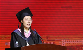 毕业生代表物理学院王春阳在仪式上发言。她深情表达了对母校、对恩师的感激之情,细数大学四年生活的点点滴滴,立志以昂扬向上之姿、青春奋斗之态投身到建设祖国的时代洪流中去。