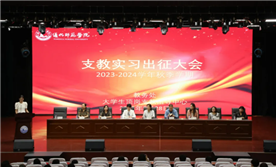 8月28日,星空电子游戏网站2023-2024学年秋季学期支教实习出征大会在第一教学楼报告厅召开,驻县教师、二级学院指导教师及参加本学期支教实习学生代表参加大会。