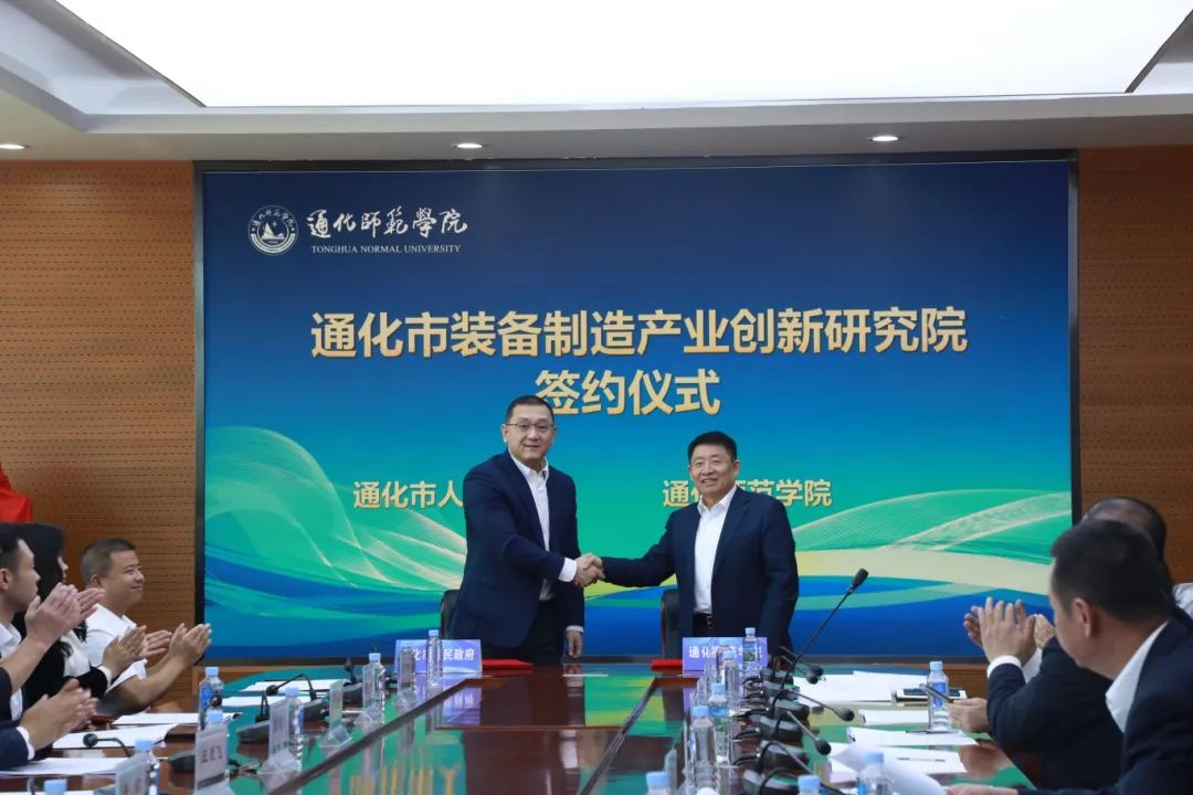 朱俊义、王雁飞共同签署合作协议,并为通化市装备制造产业创新研究院揭牌。