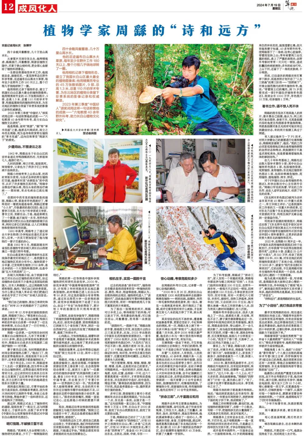 周繇说:“我肯将人生全部精力投入植物研究的事业,少不了一颗颗指路的明灯。”